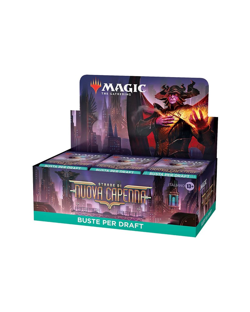 Nella città costruita dagli angeli, i Lord Demoni stringono le redini del potere. Tra le sue strade, famiglie di criminali e malfattori si battono nella notte, riparati da una facciata fatta di lusso sfrenato, omertà e art decò. Qui nella Nuova Capenna, l'unica legge è quella della forza e dell'intrigo: sarai in grado di fare valere la tua volontà? Scopri l'essenza di questo gioco di carte con i Draft Booster: tre buste a testa e un gruppo di amici sono tutto quello che vi serve per una serata di puro divertimento.